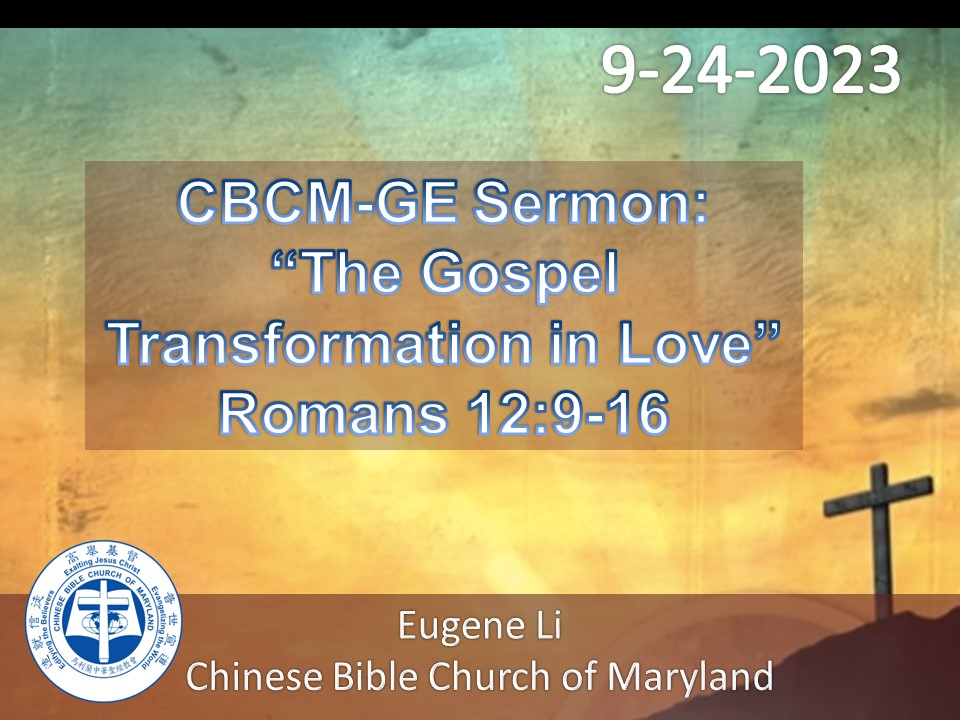 The Gospel Transformation in Love - Romans 12:9-16 - Eugene Li