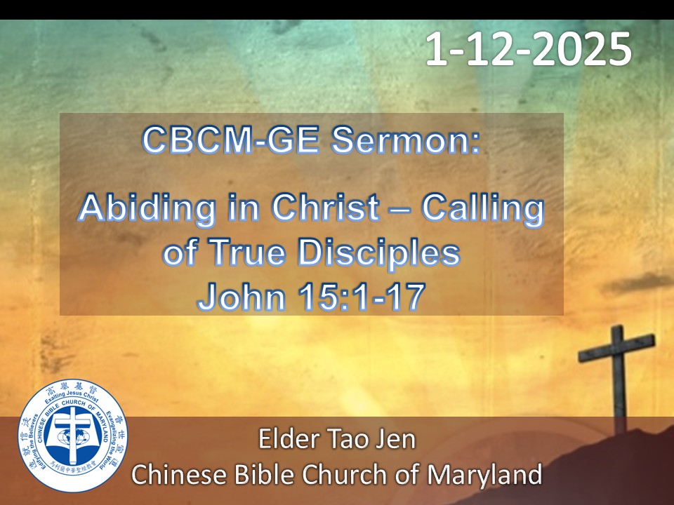 Abiding in Christ – Calling of True Disciples - John 15:1-17 - Elder Tao Jen